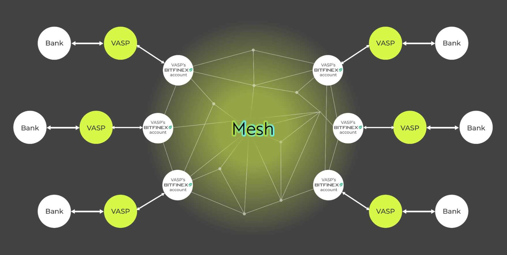Mesh is a Web3 SWIFT for VASPs, enabling secure and compliant use of USD stablecoins for real-world payments. It streamlines global trade payments by offering a trusted, efficient solution for VASPs, banks, and enterprises. Partnering with Bitfinex, Mesh is transforming the future of finance, making global payments more accessible and seamless.